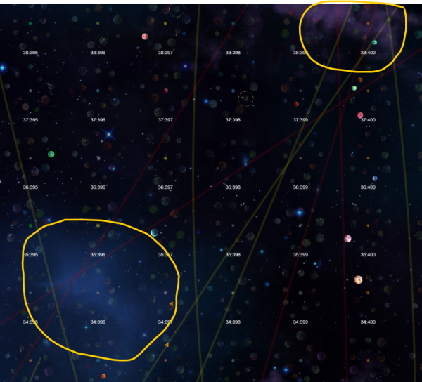 Описание: На контрастном мониторе не видны траектории полёта в галактике, за исключением малых областей с более светлым фоном. Увеличьте яркость траекторий, пожалейте наши глаза.