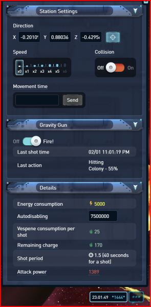 When I click on the gravity gun, the display indicates that I am hitting the planet 59%, then 10 seconds or so later, it changes to 55%.