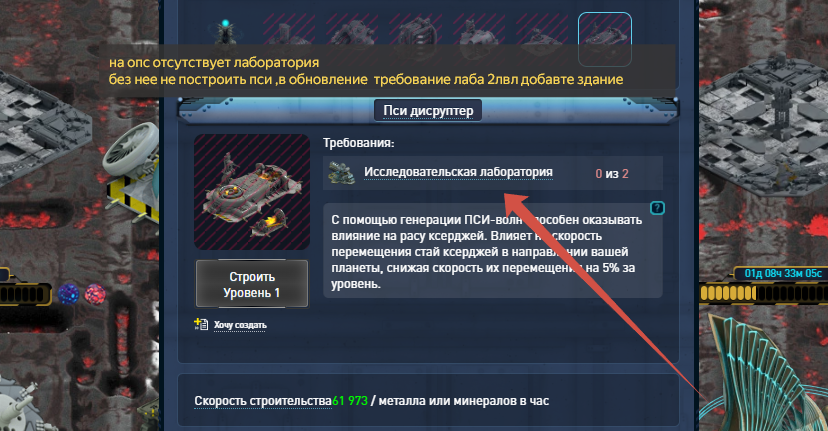 , В обновление вы сделали для постройки пси дист- требуется лаборатория 2 лвл,а на опс здания лаборатории для постройки отсутствуют невозможно построить пси.