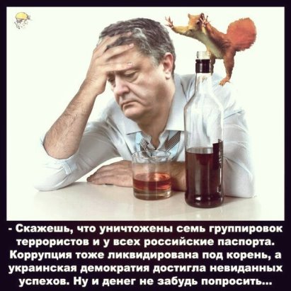 HobotSumkin, брехня)) почему на столе непатриотичное виски..должна быть горилка с сальцэм...а белочка без вышиванки-это явно агент Путина))