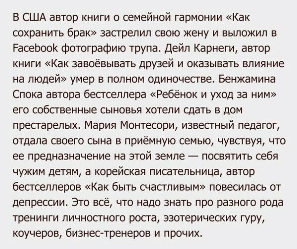 я тоже эти книжки читал!!! тут сам факт!!! всем советовали как жить а сами плохо кончили))))))))