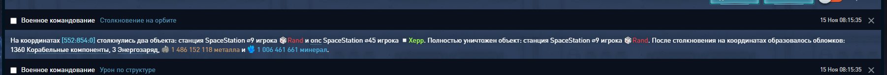 простым игрокам которые тут все строят-покупают на законных основаниях и достигают всего игровыми методами будет интересно почитать и узнать сколько же хд вы заплатили за станцию с 76кк обороны и 10к артов и сколько за остальное )
