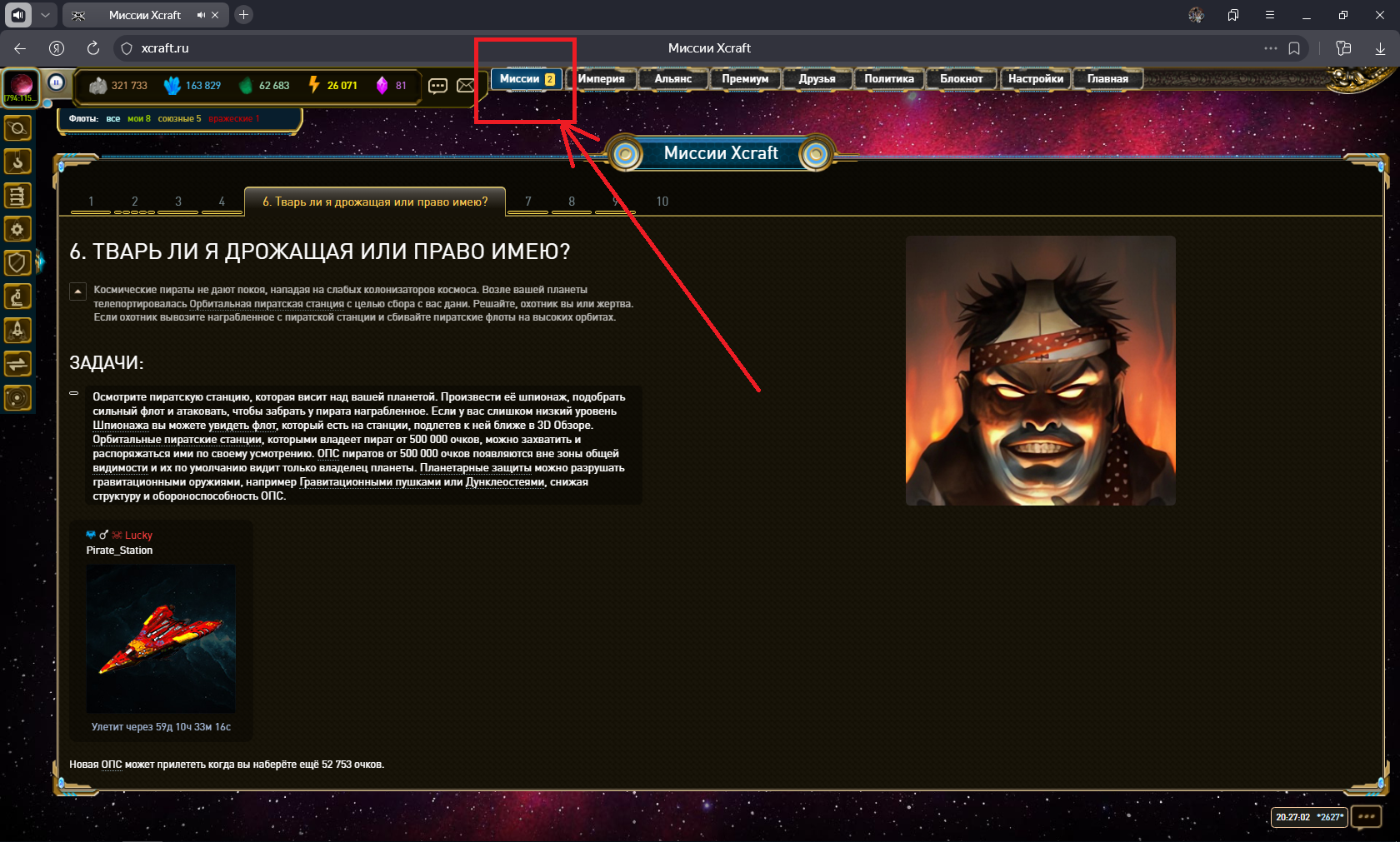 так же и с миссиями. цифра 2. Две миссии к исполнению, кроме ОПС пиратской никаких заданий нет.