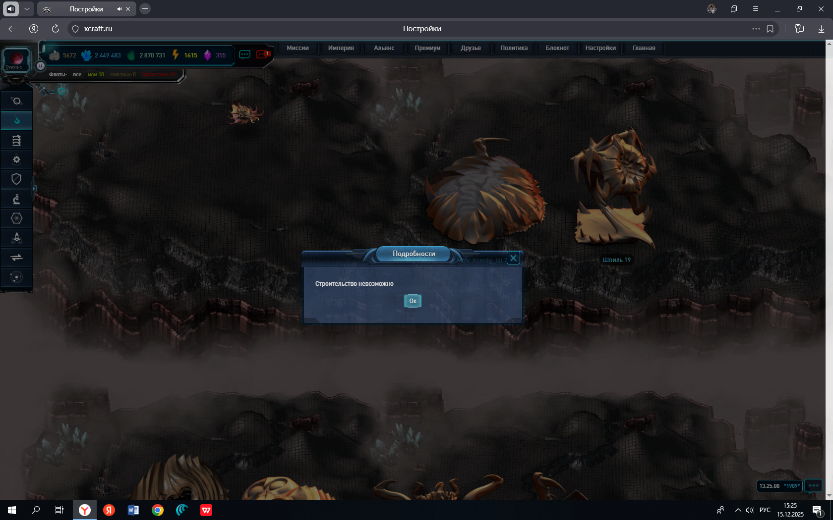 Есть ресурсы на планете, есть свободные поля для постройки, а выскакивает сообщение: строительство невозможно?