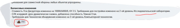 · Стоимость Пси Дисруптера изменена на 10000/6000/0, КУ 2.5. Требование для постройки изменено на 2-ой уровень Исследовательнской лаборатории.