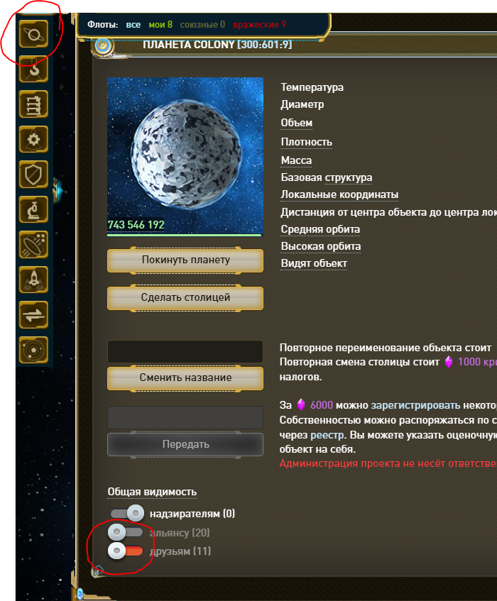 Теперь игрокам будут видны не только флоты, летящие на координаты их объектов, но и все флоты, у которых начальная или конечная точка полёта находятся в зоне их видимости. Общая видимость от друзей или союзников также показывает флоты, связанные со всеми видимыми координатами.