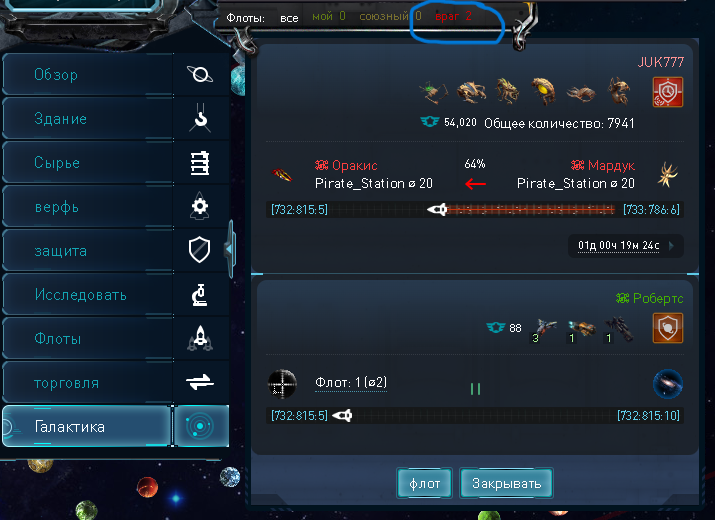 Описание: При атаке на ОПС в карте галактики отображается дублирование флотов. Во вкладке вражеские флоты один