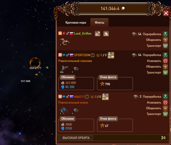 При попытке отправить зависшую королеву в атаку на боевой флот соала, нет предупреждения об атаке союзника, нет и самого боя.