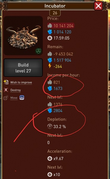 As you can see the depletion of my building did not go to the advertised 0% but was instead decreased by approximately 9%. Clearly a good investment. The slide still indicates if I spend another11m res it would 0, but we know it wont. Admin tells me the only way it goes to 0 is with a reset medal, but i think by destroying the building to level 0 you could also accomplish this.