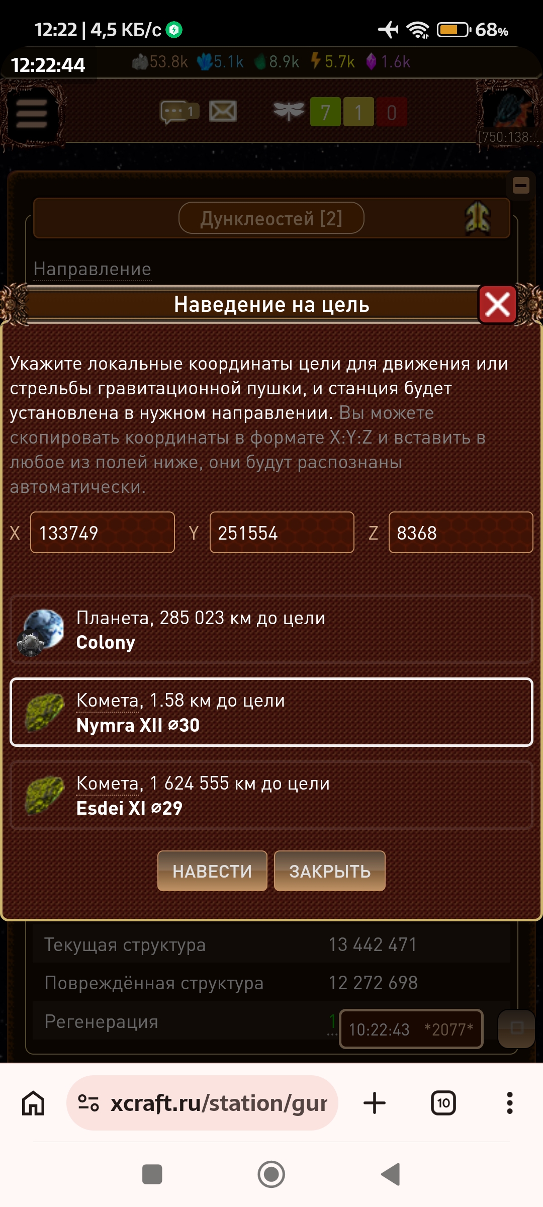 Баг , Дуня пролетает сквозь кометы
