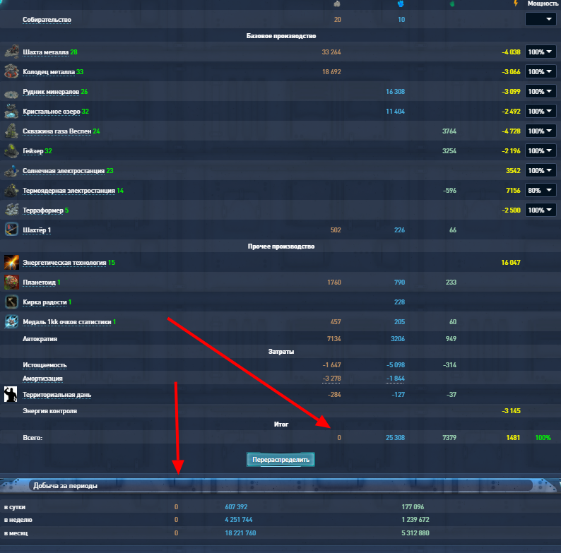 Описание: не хочу даже пытаться складывать на калькуляторе выработку ресов на остальных планетах. Но на этой по металлу в честь праздника х0 . да и по итогам- удачно сделал вчера скрин в 23,38 общей выработки. и для сравнения- сегодняшний "х7 "...)) и пушки не тронутые с 15к стали жрать 39к веспена...
