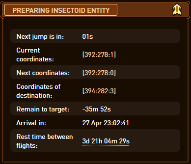 In the screenshots below you can see that the remain to target has reduced by 11 minutes, but the timer to next jump is still 1s and the "cloud" is Amber i.e. still in jump preparation